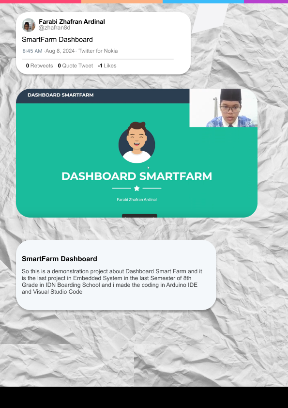 IoT/Robotic (SmartFarm Dashboard)By farabizhafran / May 22, 2025 So this is a demonstration project about Dashboard Smart Farm and it is the last project in Embedded System in the last Semester of 8th Grade in IDN Boarding School and i made the coding in Arduino IDE and Visual Studio Code