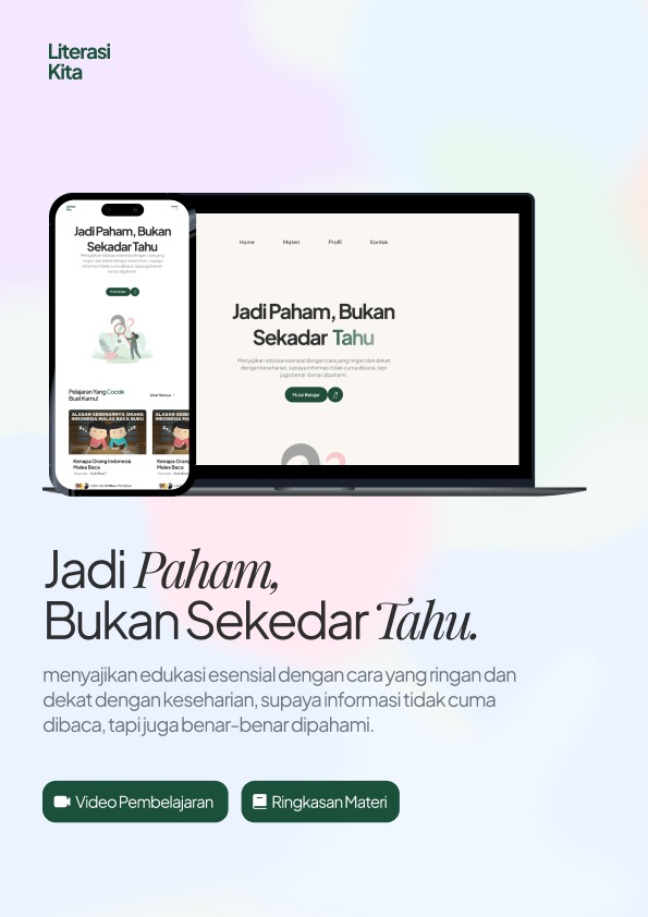 So this is the final project that i made with my friend ihsan in IDN Boarding School as the final project of 9th Grade and in this project i made a website called LiterasiKita, a website that focused on literation and knowledge.